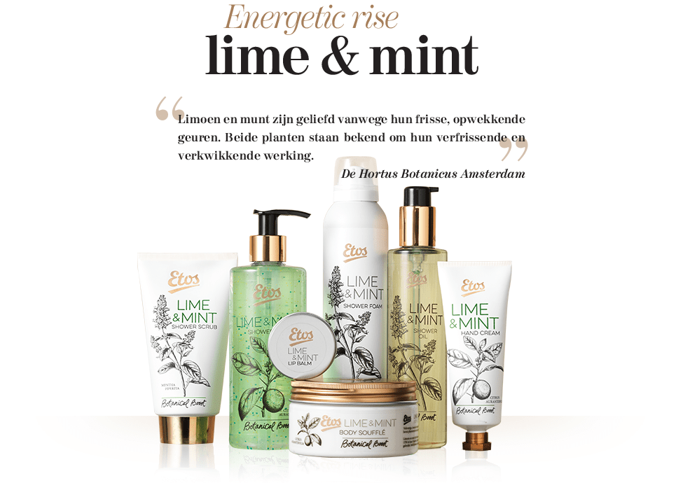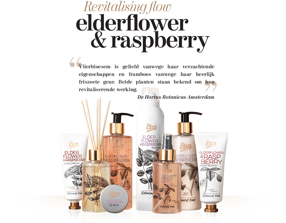 Zo kun je de dag verfrissend en verkwikkend beginnen met de Lime & Mint lijn. Ben je juist op zoek naar een wat meer revitaliserende werking en hou je van een friszoete geur, dan kun je kiezen voor de Elderflower & Raspberry lijn. Toe aan ontspanning en balans? Dan is er de rustgevende lijn Jasmine & Vanilla.