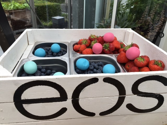 Tijdens het toetje werd de nieuwste smaak lipbalm: Pommegranate Raspberry gepresenteerd, vanaf september verkrijgbaar en zooó lekker. En EOS heeft nog meer nieuws, want vanaf september zijn ook de heerlijke handcrèmes (die handige vorm en kleurtjes!) en verzorgende bodylotions verkrijgbaar.