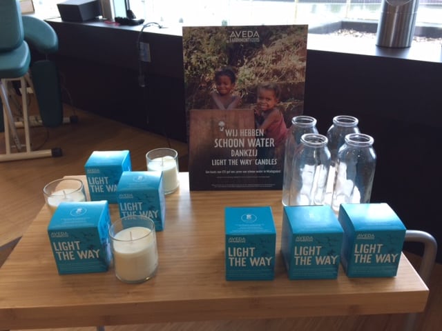 Daarom is april al meer dan 10 jaar lang bij Aveda ‘Earth Month’. Alle Aveda salons bundelen een maand lang hun krachten om geld in te zamelen voor de bescherming van onze planeet en de bevolking, zoals schoon drinkwater voor iedereen. Ook dit jaar doneert Aveda 100% van de aankoopprijs van de limited edition ‘Light the Way’ Candle aan Global Greengrants Fund, een non-profit organisatie die waterprojecten over de gehele wereld steunt ten behoeve van schoon water. Deze kaars op basis van sojawas, brandt 27 uur, ruikt zalig en is dit jaar ontworpen door kinderen uit de omgeving van Manakara, Madagaskar, die het resultaat van de schoon water projecten al hebben mogen ervaren.