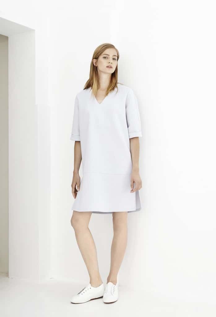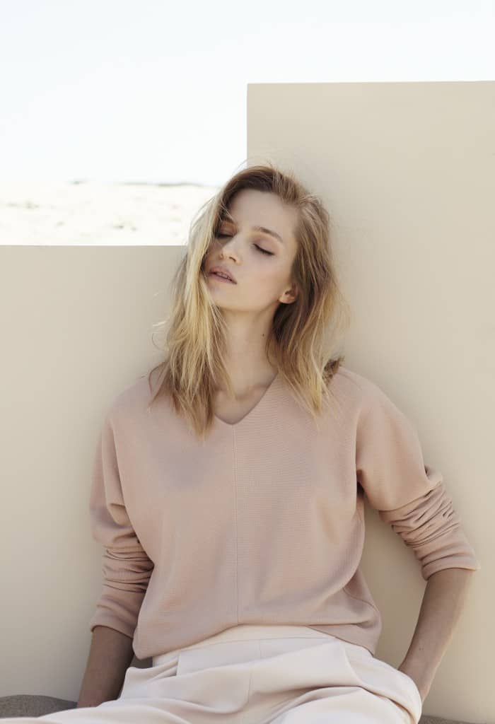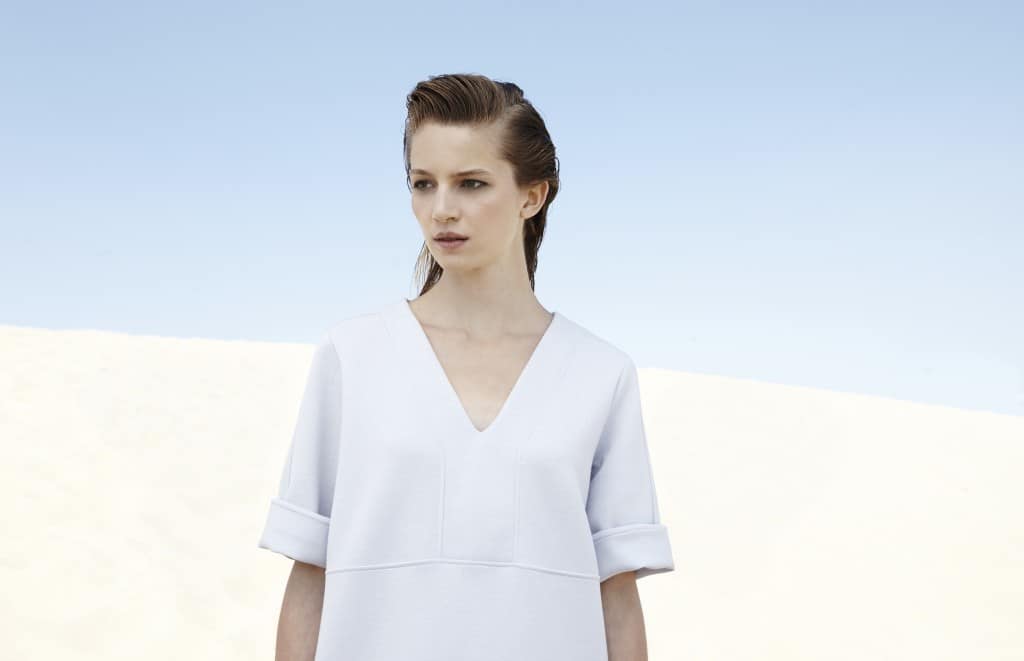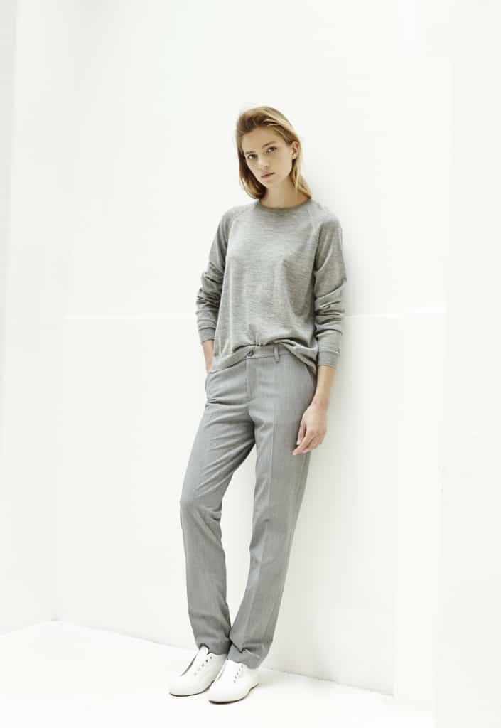 Deze tegenstellingen binnen het ballet resulteeren in een reeks ontwerpen in zachte kleuren maar krachtige silhouetten. De poederige (wit, roze, grijs) tinten doen denken aan spitzen, tutu’s en klassieke balletpakken.