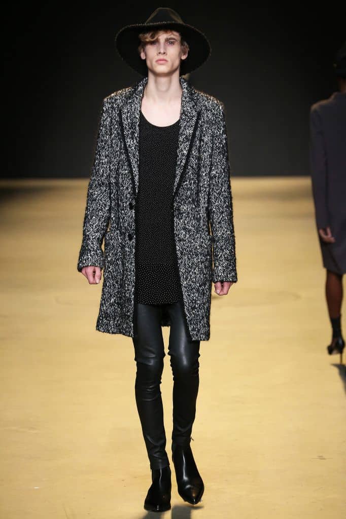 Voor de mannenlijn die Tony tegelijk met de dameslijn toonde stond draagbaarheid en afwerking centraal. In de herenlijn werden damesstoffen gebruikt voor comfort maar ook ‘rauwe’ stoffen zoals leer en bont om zo niet de mannelijkheid te verliezen. Veel zwart, grijs met de combinatie van wol en leer.