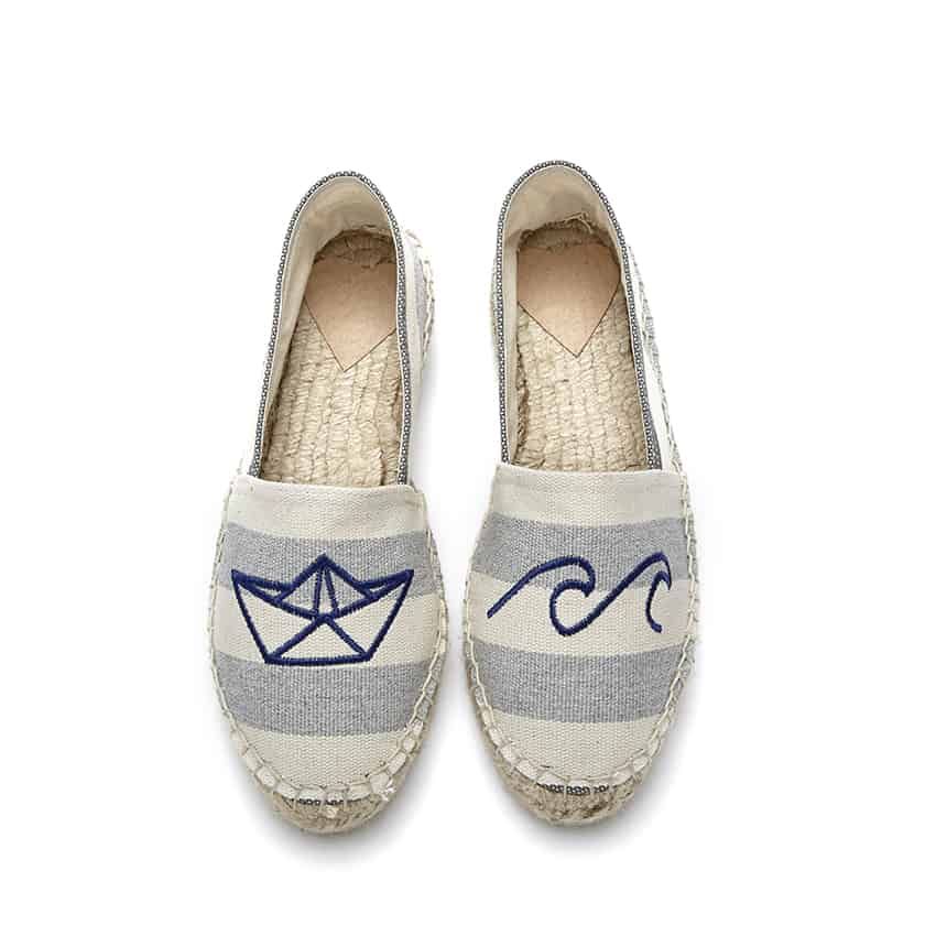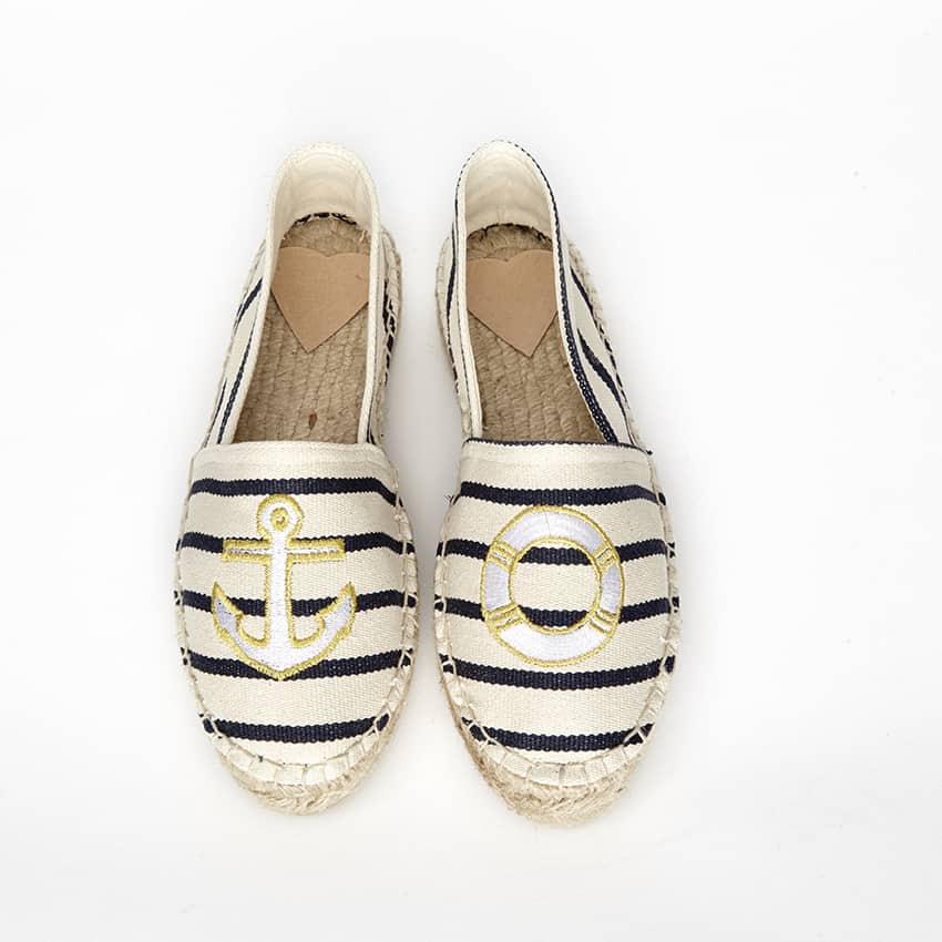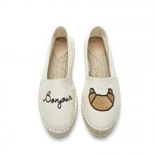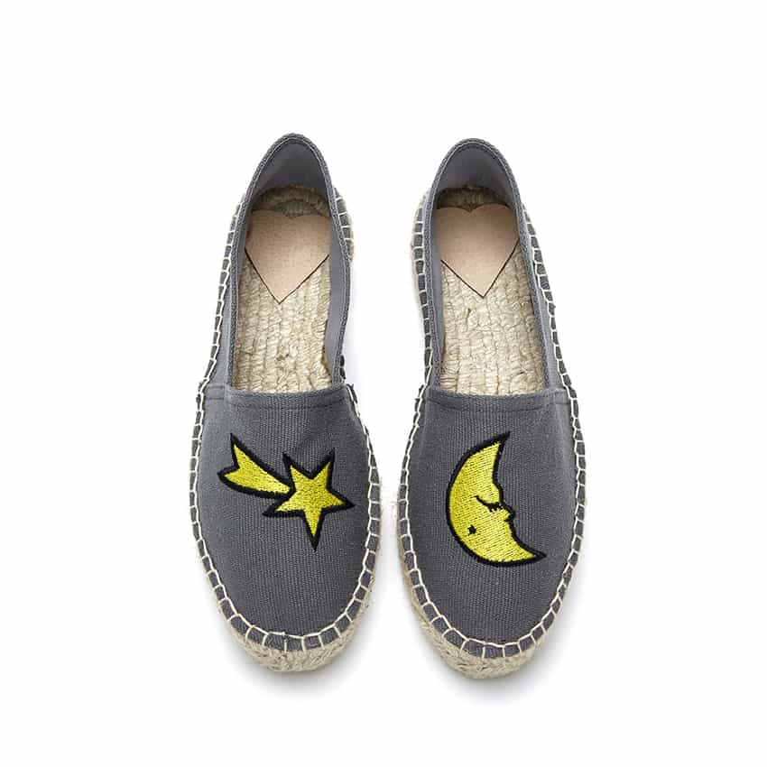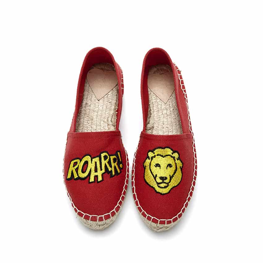 Deze espadrilles zijn toch echt te leuk! De schoenen van Fabienne Chapot – formely known as Fab. – zijn handgemaakt in Spanje, hebben een extra dikke plateauzool en op de linkerschoen zit een ander borduursel dan op de bijbehorende rechterschoen.