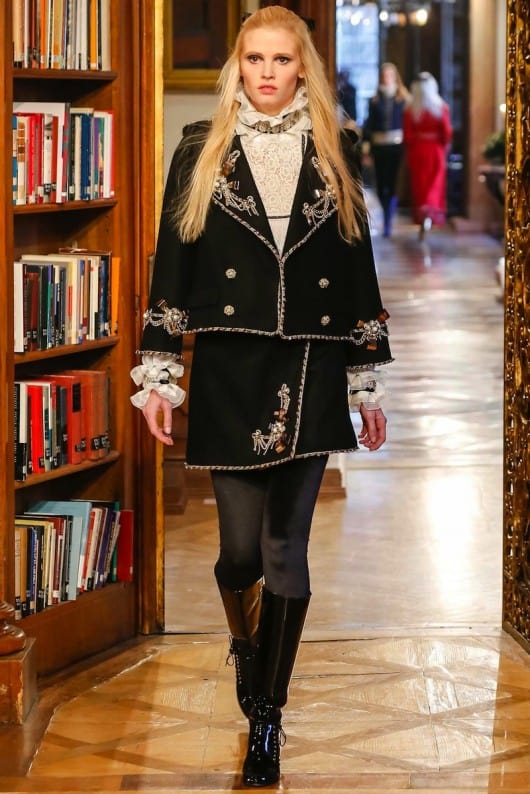 Ieder seizoen kijken wij uit naar de shows van Chanel. Designer Karl Lagerfeld ontwerpt namelijk niet alleen de mooiste collecties maar kiest ook altijd voor de meest adembenemende locaties. Voor de Metiers d’Art Paris-Salzburg 2014-15 show koos Karl voor Oostenrijk. Waar Coco Chanel ooit in een hotel, door het uniform van de liftjongen, geïnspireerd werd voor het ontwerpen van het iconische Chanel jasje. En sinds Karl Lagerfeld aan het roer staat van Chanel wordt The Jacket ieder seizoen weer opnieuw uitgevonden. Deze gaat dus never out of style!