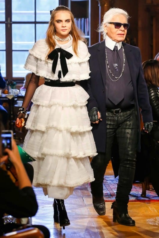Overgens zou reality star turned supermodel Kendall Jenner debuteren op de Victoria’s Secret show in Londen maar koos er toch voor om de show van Chanel te lopen. Dutchie Lara Stone liep ook mee en Karl’s lievelingsmodel en wild child Cara Delevingne mocht de show zoals gewoonlijk weer sluiten.
