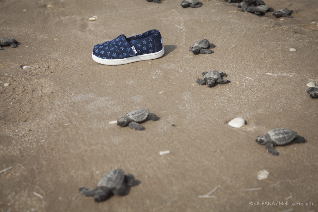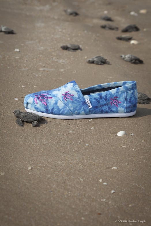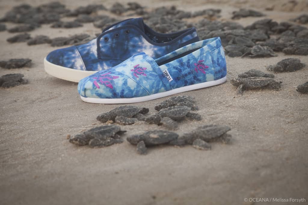 Na 10 jaar Giving heeft TOMS al 50 miljoen paar schoenen gegeven aan kinderen in nood, het gezichtsvermogen hersteld van mensen in nood hersteld, schoon water gegeven en bijgedragen aan een veilige geboorte voor moeder en kind. Hun nieuwe campagne ondersteunt de zeeschildpad. Voor elk paar schoenen uit de TOMS x Oceana Sea FPO Turtle-collectie zal TOMS €5 aan Oceana doneren om zeedieren zoals zeeschildpadden te helpen beschermen.