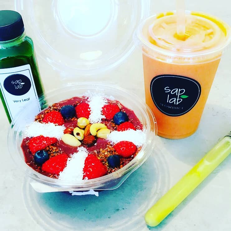 Bij Saplab, de nieuwe slowjuice bar van de twee leuke zusjes Elise en Caroline heb ik mijn eerste gingershot achterover geslagen. De tranen sprongen in m’n ogen, maar je hebt het idee dat je meteen gezonder bent 😉 pure gember, een beetje limoen en appel. Dylan nam een heerlijke Fruit Loop (aardbei, mango, banaan, ananas en sinasappelsap) smoothie. De groene Very Leaf ( Romaine sla, spinazie, komkommer, selderij, peterselie, citroen en gember – goed voor je huid en haar -) smaakte lekker en vers. Waarvoor ik zeker vaker terugga is de Açaí – spreek je uit als Assa-ie en is een erg gezond besje uit de Amazone – Bowl met blauwe bessen, zo lekker! In het mooi ingerichte winkeltje op de Denneweg is alles gezond, vers, rauw en puur, zonder toevoegingen. Elise en Caroline weten heel veel over wat de slowjuices en sapjes voor je lichaam doen en vertellen daar alles over. Oh ja, ze hebben ook lekkere yogurtjes, watertjes, salades, koffietjes en detox-kuren voor als je je lichaam een boost wil geven.