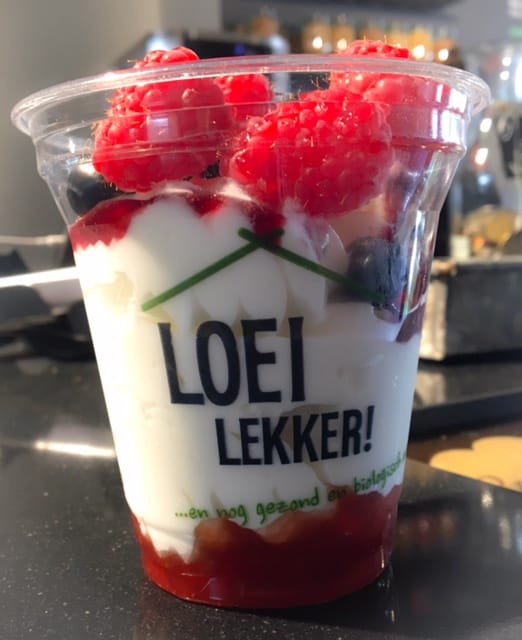 Zo lekker, die Merry Berry frozen yoghurt! We kunnen nu gelukkig ook genieten van de geweldige yoghurts (magere, boeren, frozen-, kokos-, geiten- of sojayoghurt) van de Yoghurt Barn op de Plaats. Wist je al dat wij, Nederlanders, 38! liter yoghurt per jaar eten? Het meeste van de hele wereld. Maar ze hebben niet alleen yoghurt, wat dacht je van heerlijke smoothies, sapjes, koffie, high tea, brunches en picknicks om mee te nemen. Én glutenvrij, lactosevrij en geraffineerde suikers vrije gebakjes van Sharp Sharp. LOEI Lekker!