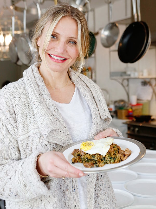 When Cameron Diaz isn’t being the most charming actress in Hollywood, she’s co-authoring books about longevity, the human body, and wellness. In The Longevity Book, Diaz applies her sunny disposition to anti-aging, lauding the health benefits of eating pork belly on a fun night out with friends. Though, most of the time, Diaz is just home-cooking like the rest of us.